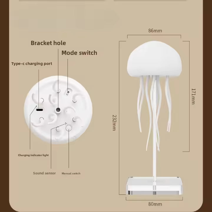 - Movimiento interactivo: Los tentáculos se mueven como si fueran reales, imitando el suave movimiento de una medusa en el agua.